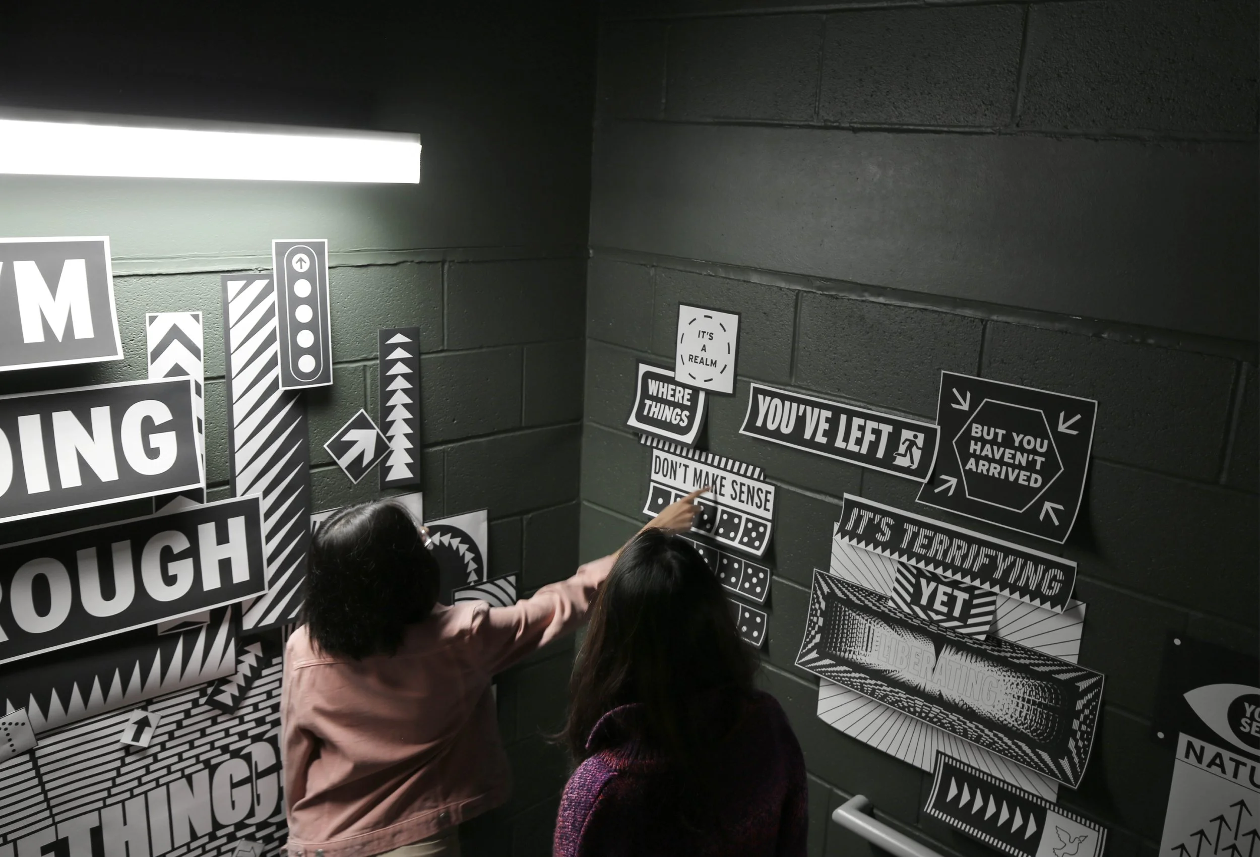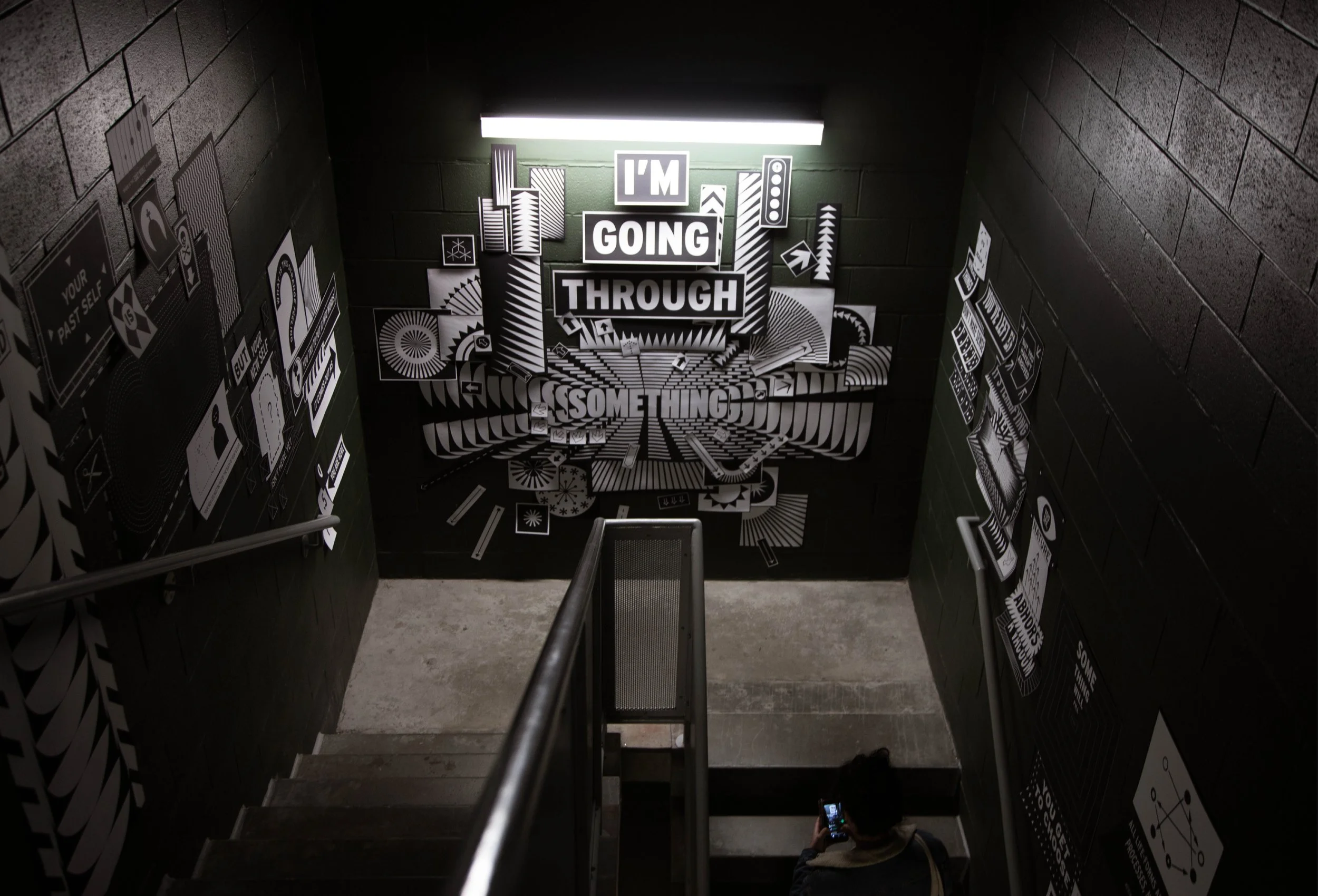 A separate installation in a stairwell allowed for a deeper experience with the exhibit. Photo by Vivian Marie Doering